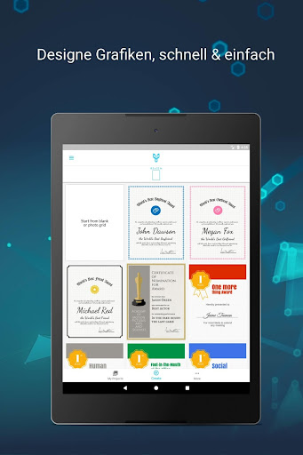 هل تريد إنشاء أكثر من الشهادات والقسائم والجوائز ؟ جرب تطبيق Desygner. إنه يوفر آلاف القوالب المصممة باحتراف بحجم مثالي بالفعل لكل ما تحتاجه ، بما في ذلك منشورات الوسائط الاجتماعية والإعلانات والعروض التقديمية والبطاقات والنشرات الإعلانية والمزيد.